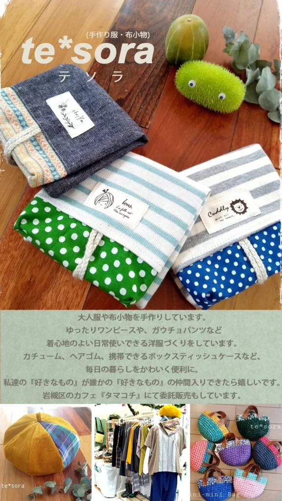 te*soraが定期的に出店している『路地裏ガレージマーケット』さんで以前仲間に声を掛け開催したマルシェが『プチ岩槻マルシェ』のようになり好評だった事から再度岩槻を中心に活動されている作家さんにお声掛けをし、今回『テソラマルシェ』と名称を改めて開催する事になりました。